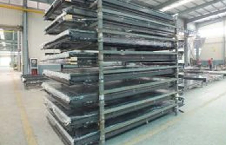 Adopt a split design of "bottom support frame + side positioning frame. Utilize a modular design concept for easy installation and disassembly. Use channel steel as the main structure, designed as a partitioned flat storage rack. Consider load-bearing factors and connection with metal bolts. Place the unitized panels horizontally and secure them with packing straps, using rubber pads for positioning and protection.